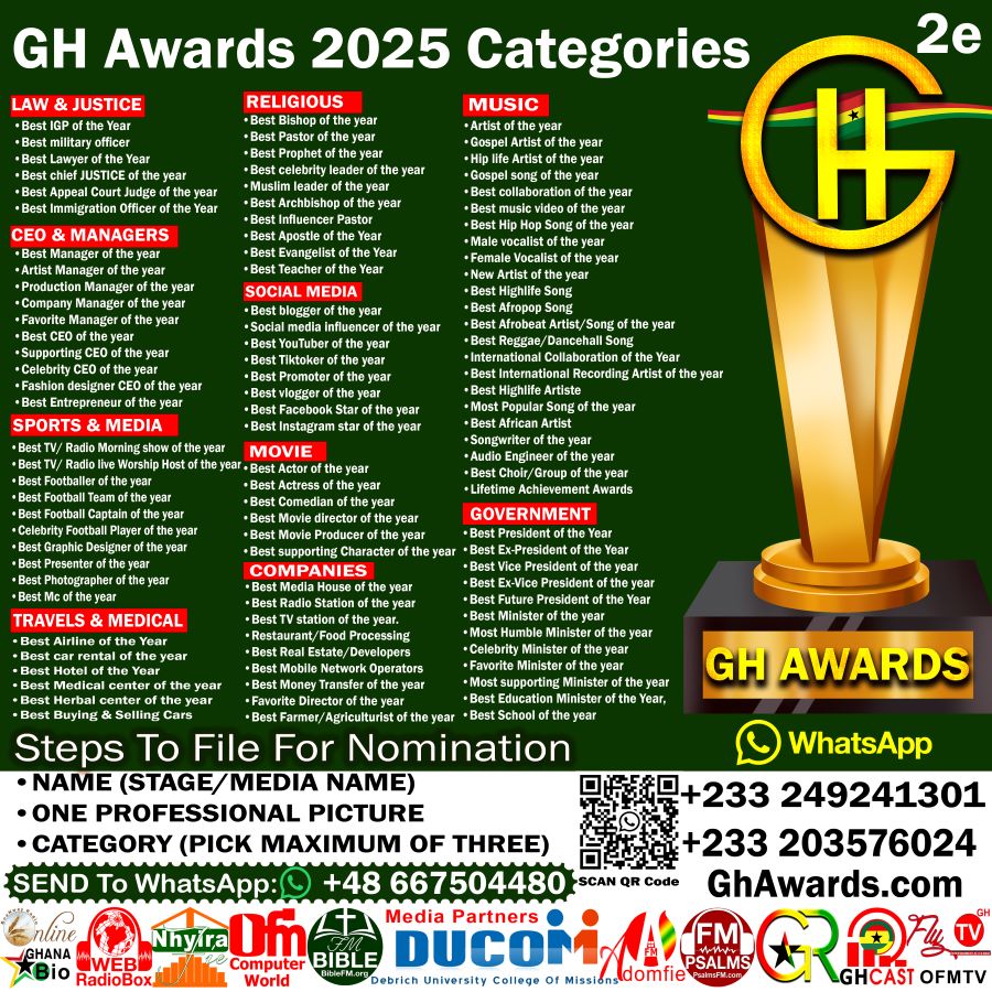 The prestigious GH Awards (Ghana General Awards) under the leadership of renowned entrepreneurs, music executives & producers such as Dr. Debrich Jeremiah Acheampong, CEO of Multi Debrich Group Ltd Ghana and CEO of OFM Computer World Europe. GH Awards is celebrating excellence across all Sectors in Ghana and in abroad.