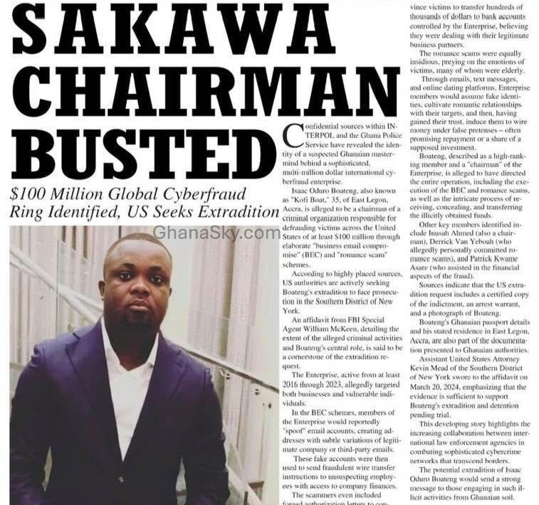On Friday, June 14, 2025, Isaac Kofi Oduro Boateng was arrested along with other four individuals—Inusah Ahmed, Derrick Van Yeboah and Patrick Kwame Asare in connection with an ongoing investigation.